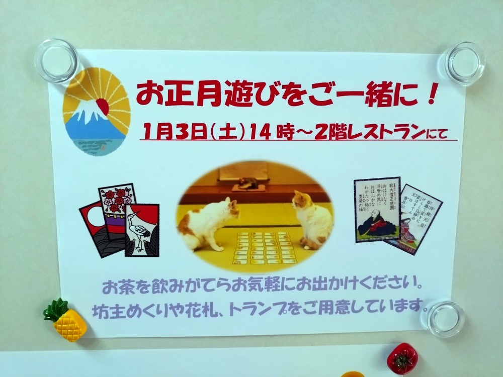 入居者の方々は、”ぼうずめくり”で大変盛り上がっていました。 初笑(^^♪