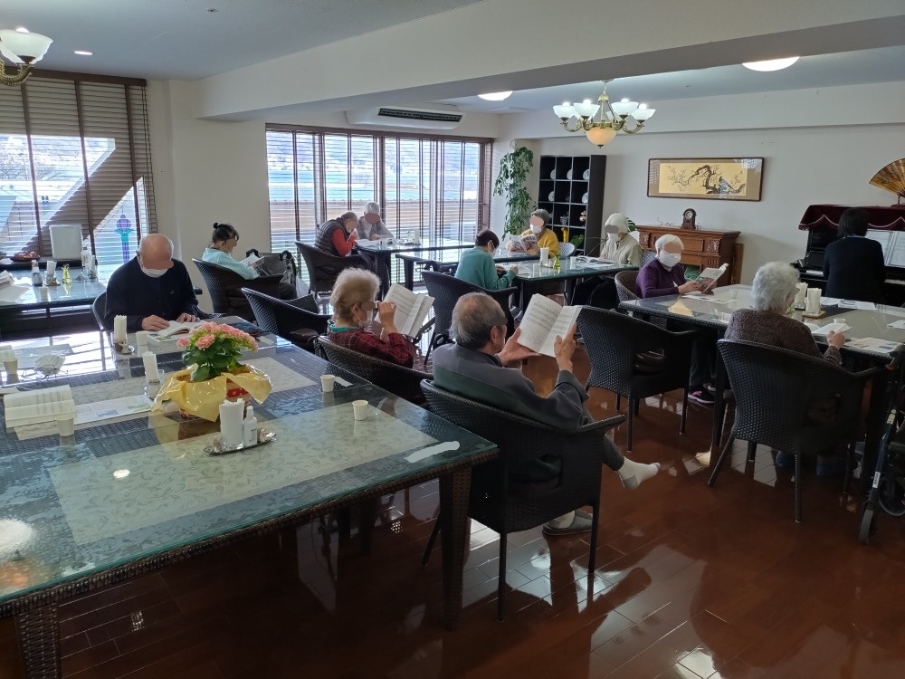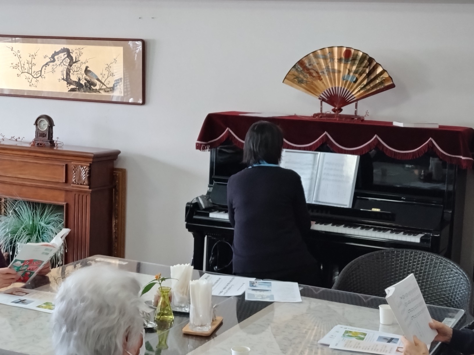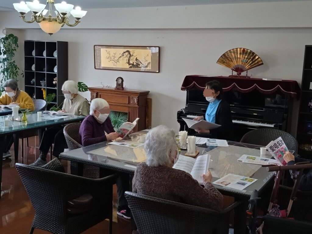 長野県の信州諏訪湖畔にある住宅型有料老人ホーム カーサ・デ・ソル諏訪湖にて、ピアノと一緒に唄いましょうの会を開催しました。毎月行う不定期開催の会になります。