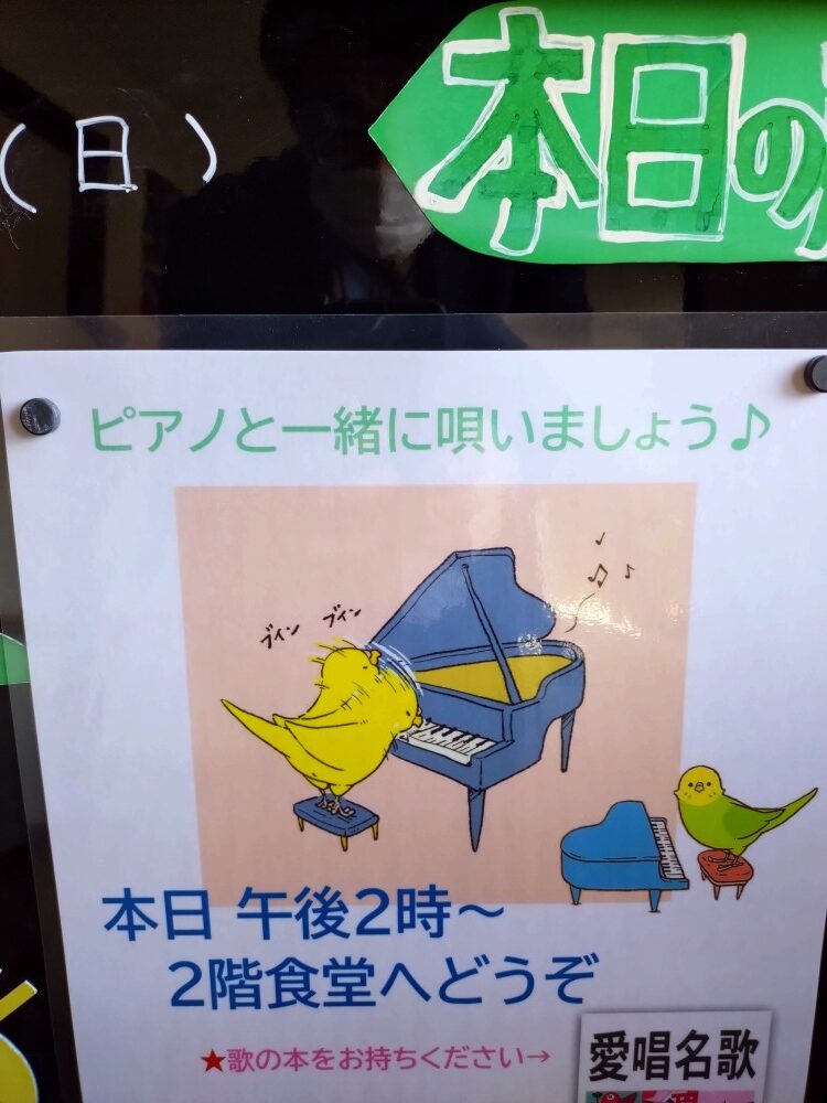 スタッフさんがピアノを弾き、一緒に唄う会になります。懐かしい歌ばかりです(*´▽`*)