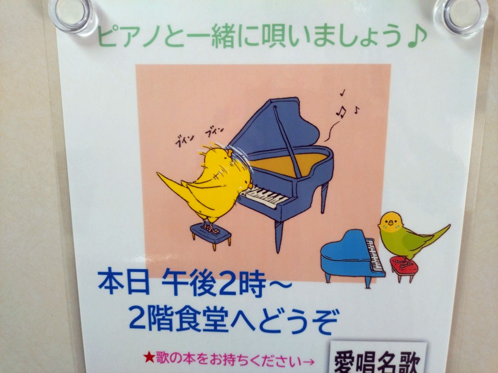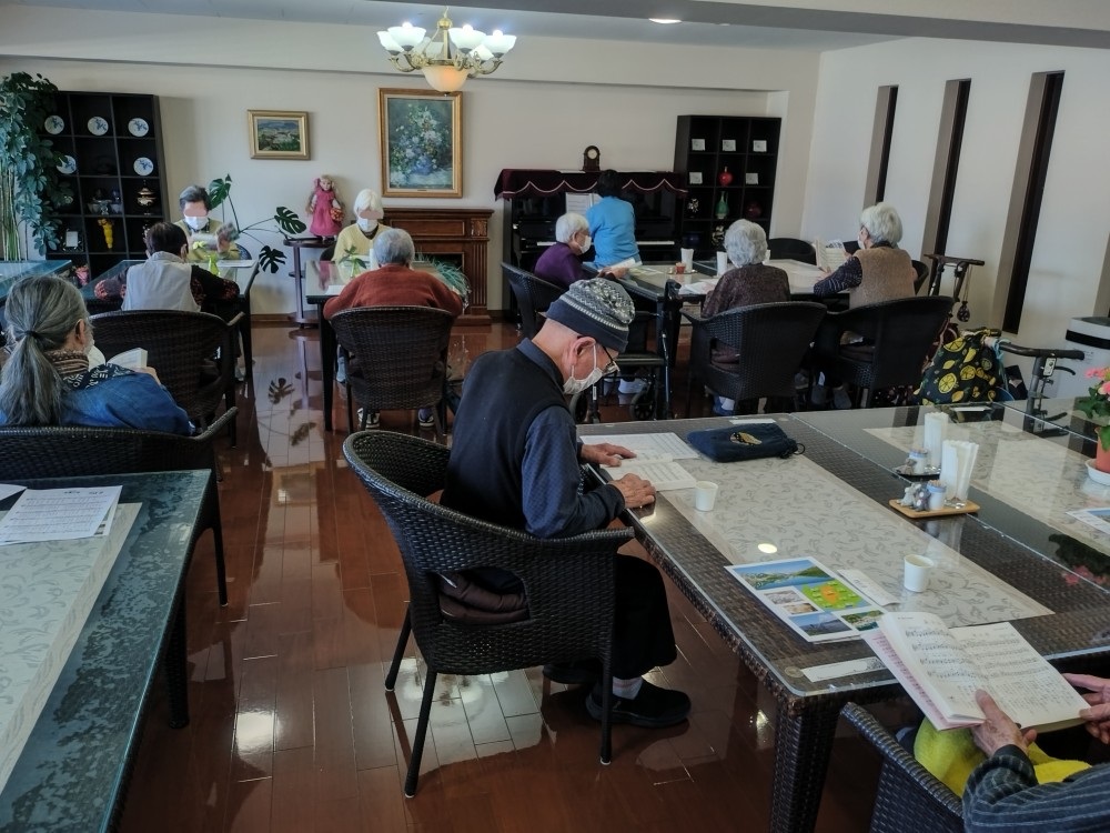 長野県の信州諏訪湖畔にある住宅型有料老人ホーム カーサ・デ・ソル諏訪湖にて、ピアノと一緒に唄いましょうの会を開催しました。毎月行う不定期開催の会になります。