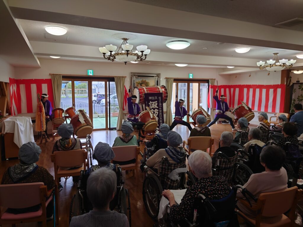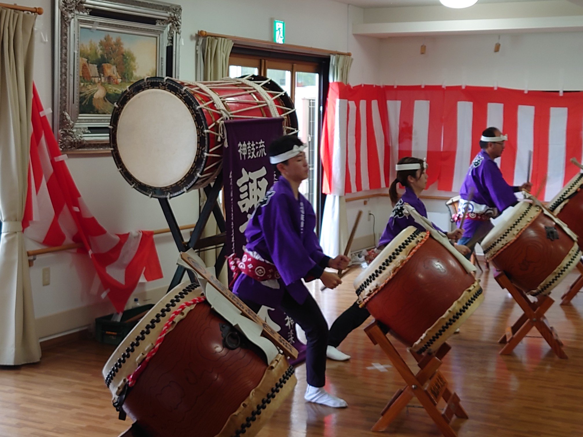 今年の敬老会も諏訪神太鼓保存会の方にきていただき太鼓を演奏していただきました。中には、感動して泣いていた入居者も( ;∀;) 演奏にきてくれて、ありがたいです(*^^*)