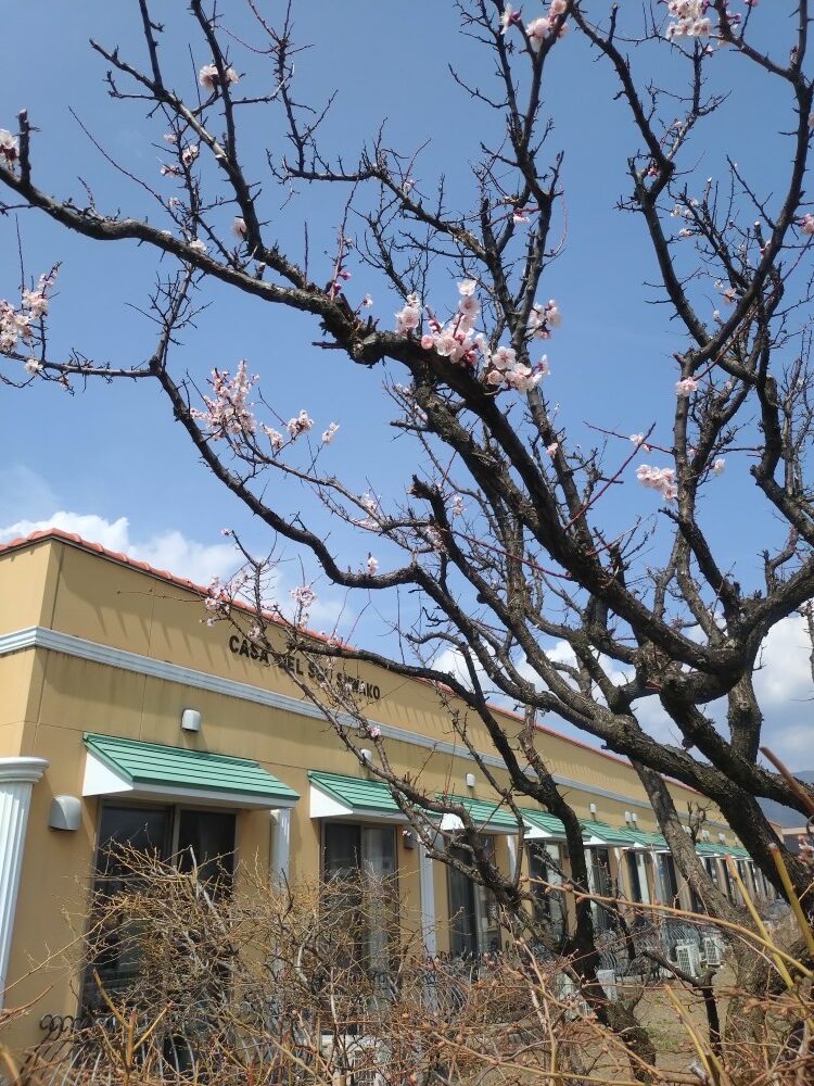 長野県の信州諏訪湖畔にある有料老人ホーム カーサ・デ・ソル諏訪湖で、梅の花が咲きはじめました。