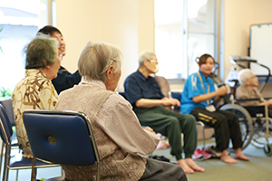 | レクレーション・体操 | それぞれの入居者の暮らしを大切にさせて頂いていますが、日課として、体操・レクレーションを行っています。参加はご自由です。 毎月、誕生会、おやつ作り等を計画しています。また、地域の保育園・小学校との交流も盛んです。 |