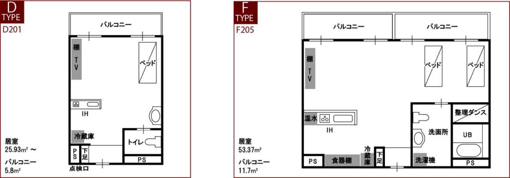 | Dタイプ(一人部屋) | Fタイプ(二人部屋) | |